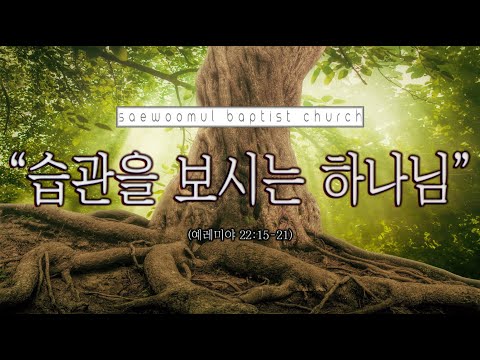 관리자김상진 2023.11.06 설교 및 말씀 주일설교 “습관을 보시는 하나님”, (렘 22:15-21) 심은지 오래 된 나무는 뽑아내기 어렵듯이 습관도 오래되면 뽑기 어려운 법입니다. 성경은 자녀들에게 어려서부터 율법의 모든 말씀들을 지켜 행하게 하라고 권면합니다(신 32:46-47..
