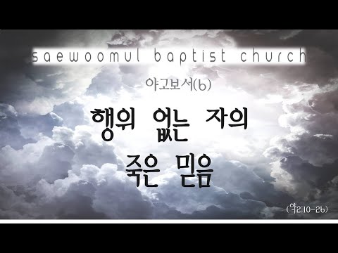관리자김상진 2023.06.12 설교 및 말씀 주일설교 야고보서 (6), “행위 없는 자의 죽은 믿음”, (약 2:10-26) 야고보서 2장 14절, 17절, 26절은 반복해서,“행위 없는 믿음은 그 자체로 죽은 것”임을강조합니다. 이는 행위로 구원을 얻는 다는 말이 아닙니다. 믿음이 행위로 드러나지 않으..