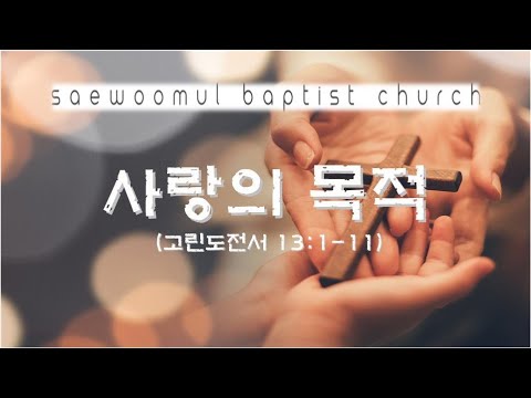 관리자김상진 2023.03.08 설교 및 말씀 주일설교 “사랑의 목적”, (고전 13:1-11) 사람은 죽을 때 소중한 사람들을 사랑하지 못했던 삶을 가장 후회한다고 합니다. 사랑(Love)이란, 100세가 된 아버지가 아들을 얻었을 때 그 아이를 향한 마음과 같습니다. 모든..