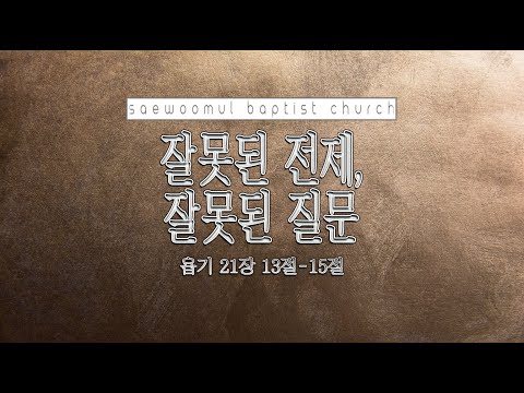 관리자김상진 2025.10.07 설교 및 말씀 주일설교 “잘못된 전제, 잘못된 질문”, (욥 21:13-15) 옷의 첫 단추를 잘못 끼우면 끝까지 다 틀어지듯, 인생도 잘못된 전제로 시작하면 모든 것이 어긋나게 됩니다. 그래서 현명한 사람은 일을 시작할 때 그 의미와 가치를 생각하고 결정하..