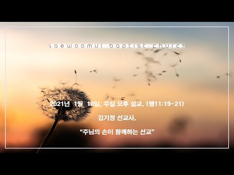 관리자김상진 2021.01.11 설교 및 말씀 주일설교 "주님의 손이 함께하는 선교", (행 11:19-21), 김기정 선교사 "주님의 손이 함께하는 선교", (행 11:19-21), 김기정 선교사 간증 설교.
