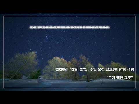 "주가 택한 그릇", (행 9:10-19) 예수님은 아나니야라 하는 제자에게 사울을 찾아가 그에게 안수하고 시력을 회복케 하라고 명하십니다. 아나니야는 그리스도인들을 핍박하는 그를..