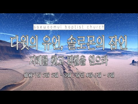 “다윗의 유언과 솔로몬의 잠언 : 지혜를 찾고 명철을 얻으라”, (왕상 2:2-3; 잠 4:1-6)
